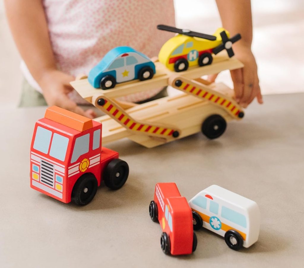 Melissa & Doug Emergency Vehicle Carrier Wooden Truck with 4 Rescue Vehicles on sale for $11.27!!