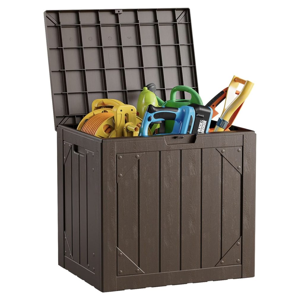Outdoor Storage Box – 31 Gallon Waterproof Resin Deck Box, Lockable, now on sale for as low as $19.49!!! Price varies by color.