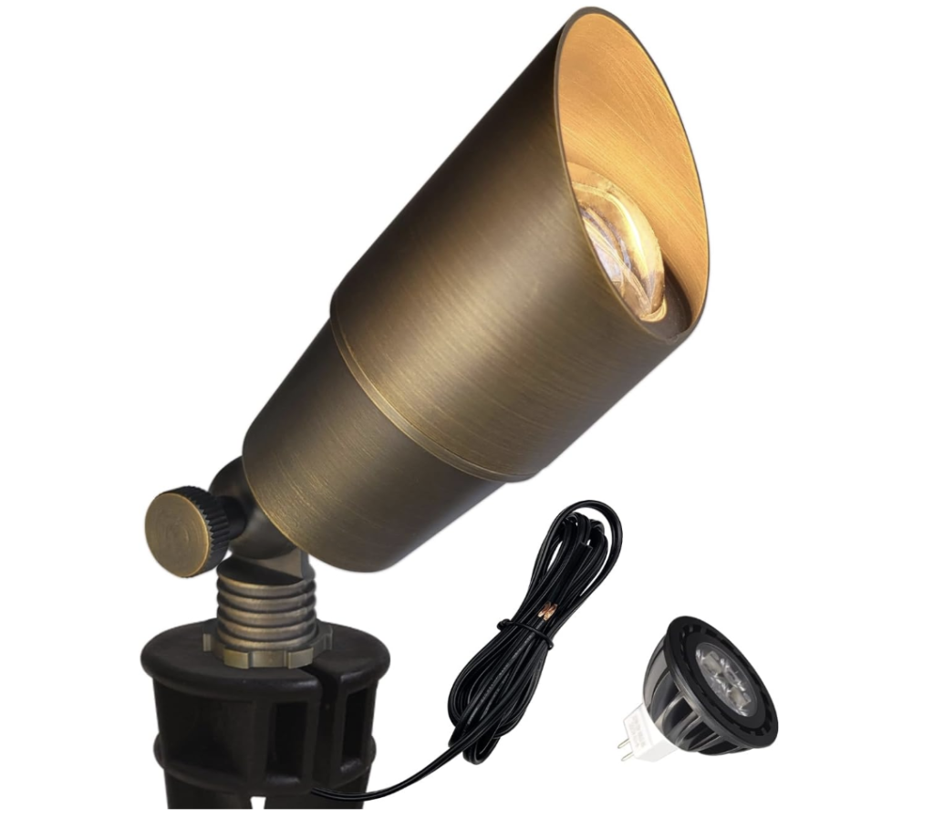 Brass Low Voltage Spotlight 1 Pack for $13.69 with sale price and promo code HHPDGUFC applied at checkout! Perfect for highlighting landscaping or pathways!