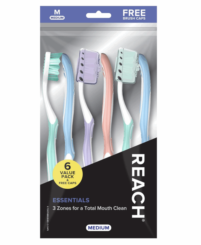 Reach Essentials Toothbrush with Toothbrush Covers, 6 Pack Read More »