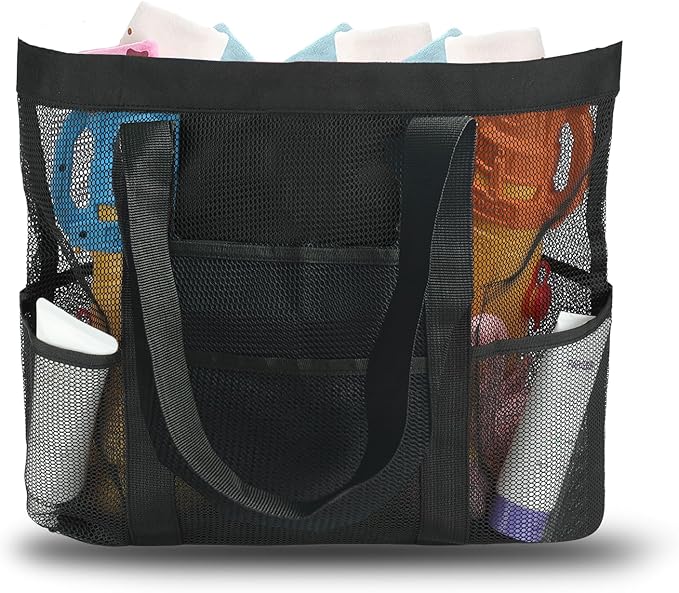 Large Mesh Beach Bag, Beach Tote Bags with 9 Pockets, promo code OQ59X3AA should auto apply, dropping as low as $3.99!! Price varies by color option.