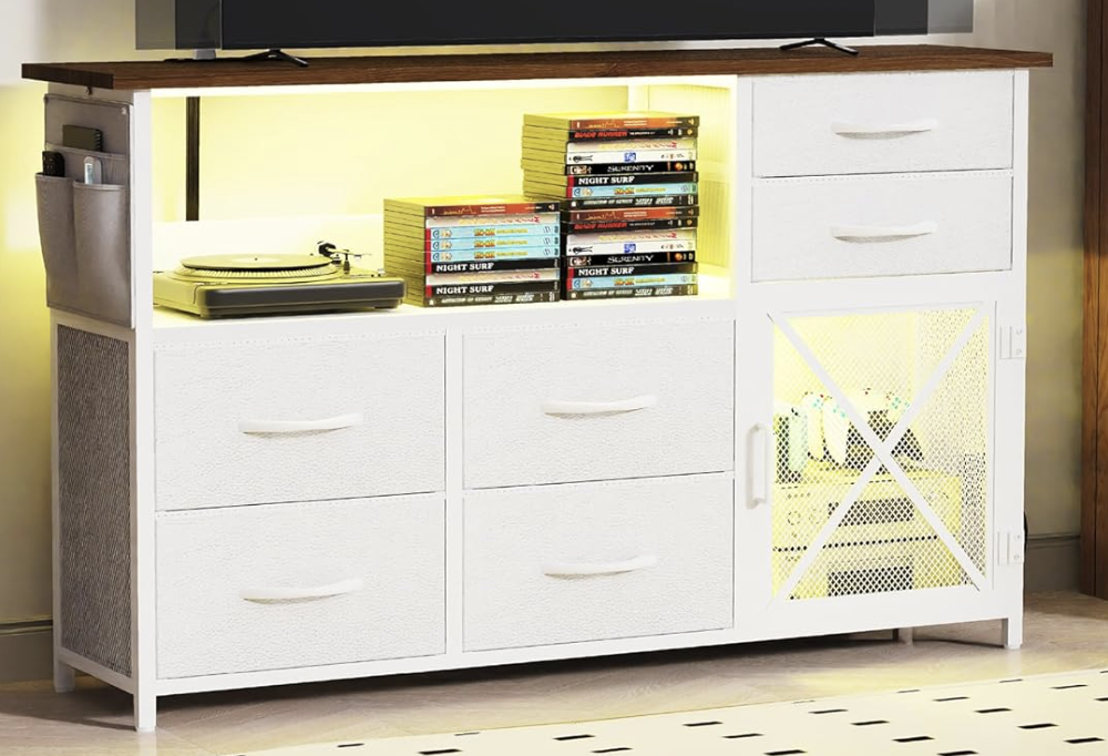 Dresser for Bedroom with LED Lights normally $125.99 but with promo code 4RXIHWFP you score it for $62.99! Works on both color options!
