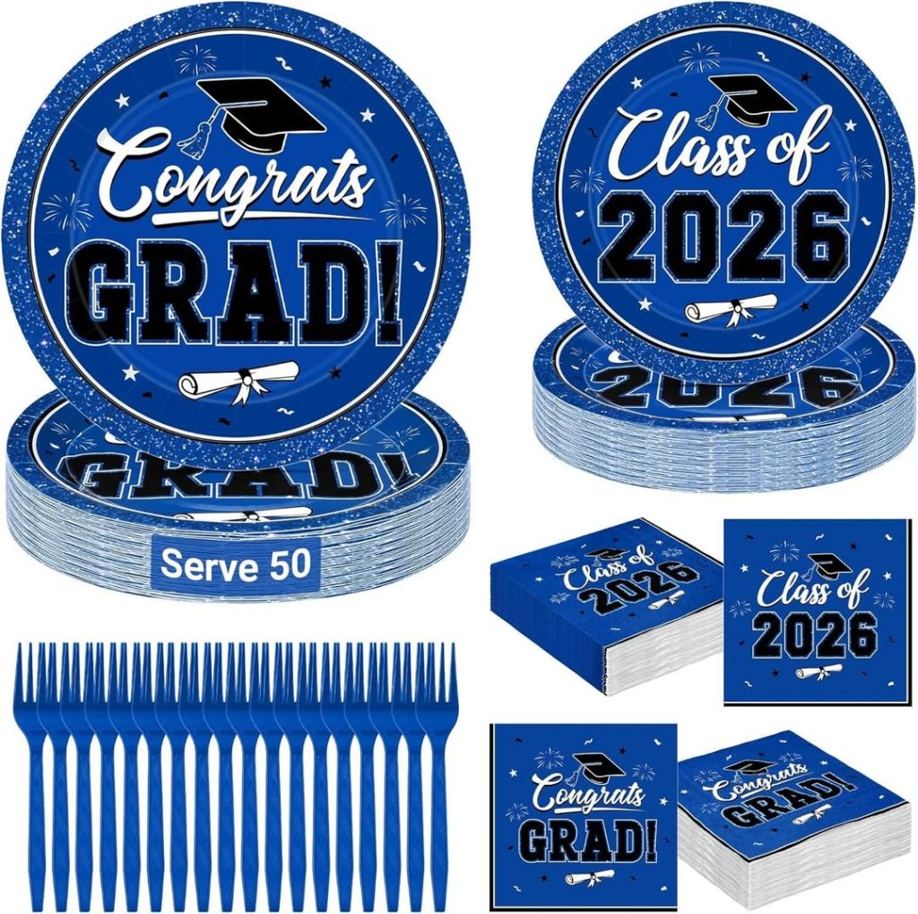 200Pcs Graduation Plates and Napkins on sale for $23.99 but with promo code ER8WNN3Z you score it for $16.79, works on all options on the link but the blue is lowest!