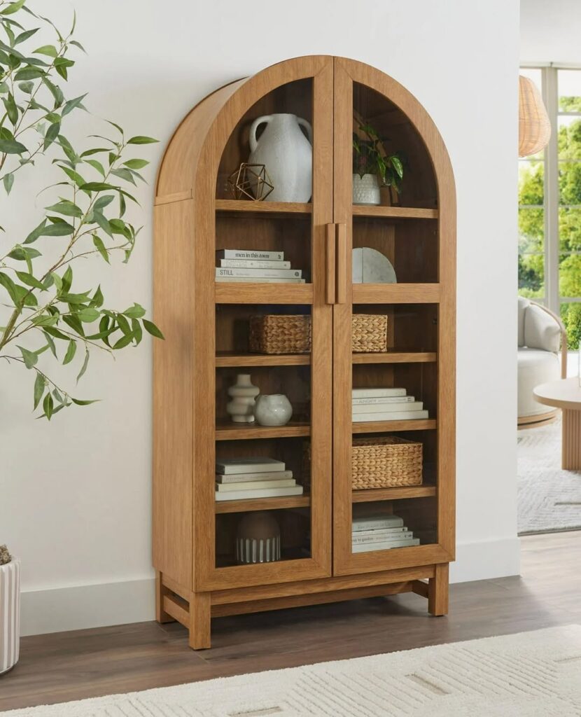 I just LOVE this!! Better Homes & Gardens Juliet Arch Cabinet, Light Honey Finish ons ale for $248 at Walmart!! This has the same look as the high end options!! Available in three colors too!
