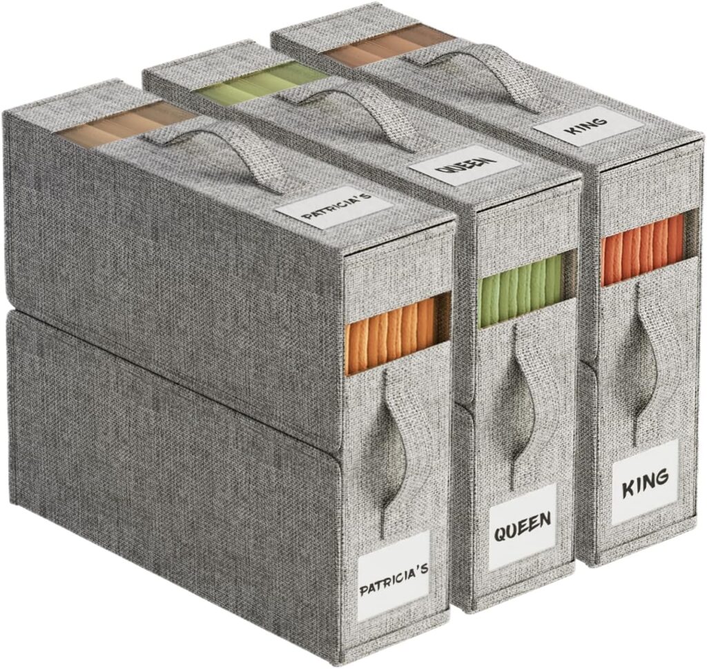 We use these for ALL of our sheets!!! ActCosy 3Pack Sheet Organizers and Storage with Handles, $32.99 down to $16.49 after clippable and promo code 9OVDHQ2J. The 5 pack is also on sale!