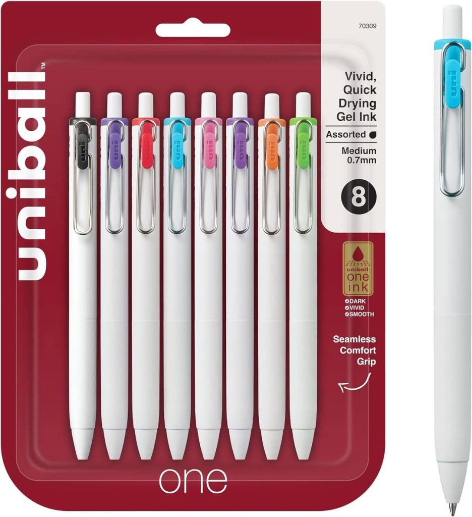 uniball one Retractable Gel Pens, Medium Point (0.7mm), Assorted Ink, 8 Pack on sale for $5.79!!