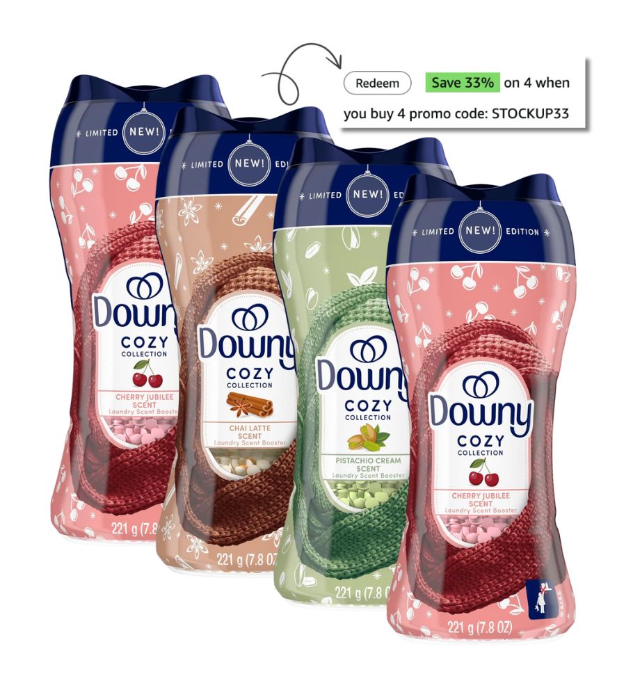Add 4 Downy Cozy Collection In-Wash Laundry Beads 7.8oz at $6.97 each which totals $27.88 but with promo code STOCKUP33 you score them for $18.68 which makes each one $4.67!