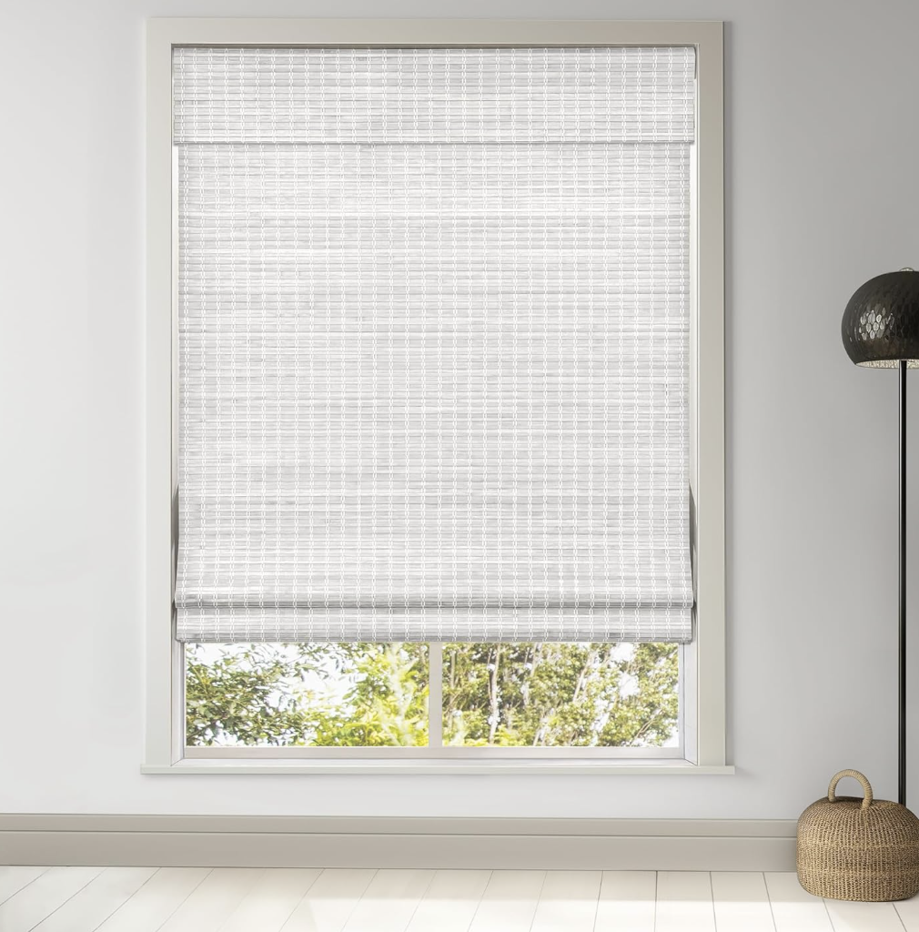 Light filtering and beautiful! Cordless Bamboo Roman Shades 46.5″ W x 48″ H in Alpine Ivory are on sale for $53.59!
