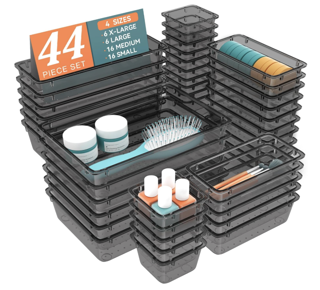 Get everything in its place! Organize your bedroom, bathroom, office, or classroom with this 44 PCS Clear Plastic Drawer Organizer Set on sale for $13.99!