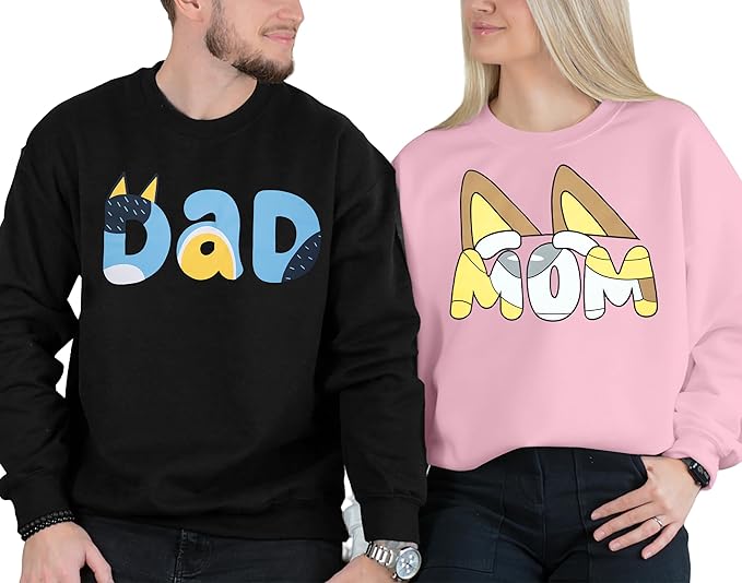 Mom or Dad Bluey Sweatshirts, Only $13.59 with clickable coupon, no code needed.