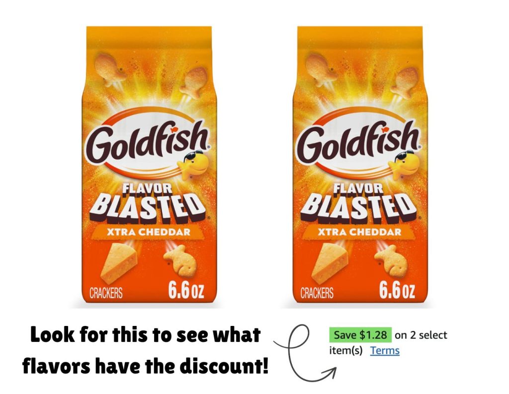 Add TWO Goldfish Flavor Blasted Xtra Cheddar Cheese Crackers to your cart and $1.28 will come off automatically making them only $4, that’s $2 each!! If you opt for subscribe and save you score them for even less!