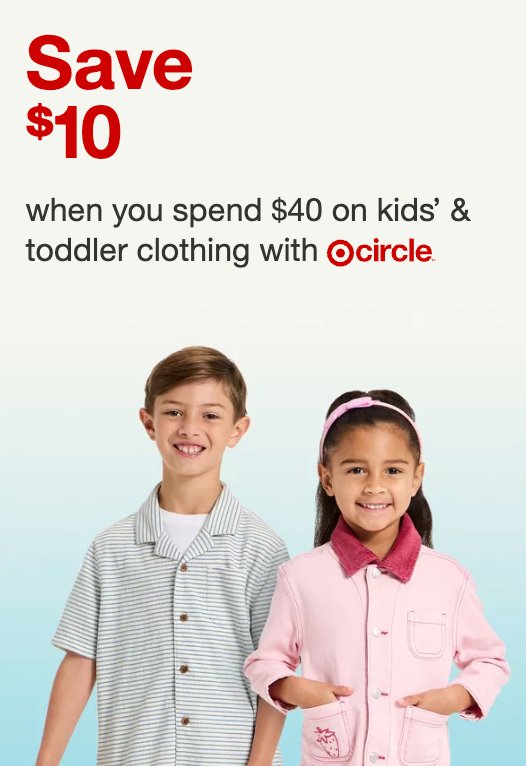 Save $10 When Spend $40 On Kids & Toddler Clothing with your Target Circle Account!! Read More »
