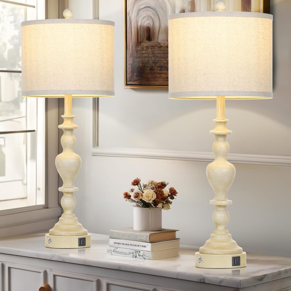 27″ Vintage Farmhouse Table Lamps for Living Room Set of 2 with USB C+A Ports, Beige, on sale for $76.94 but use code ARSFJ6LK and grab for $32.32!!!