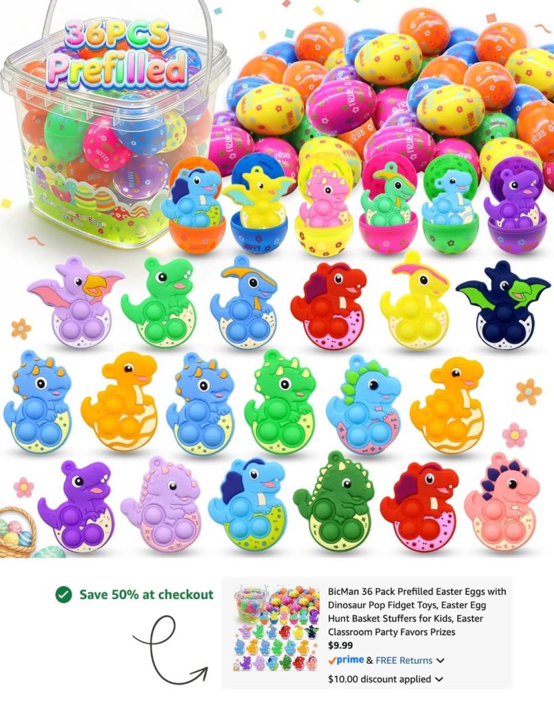 BicMan 36 Pack Prefilled Easter Eggs with Dinosaur Pop Fidget Toys drops 50% at checkout making them only $9.99!!