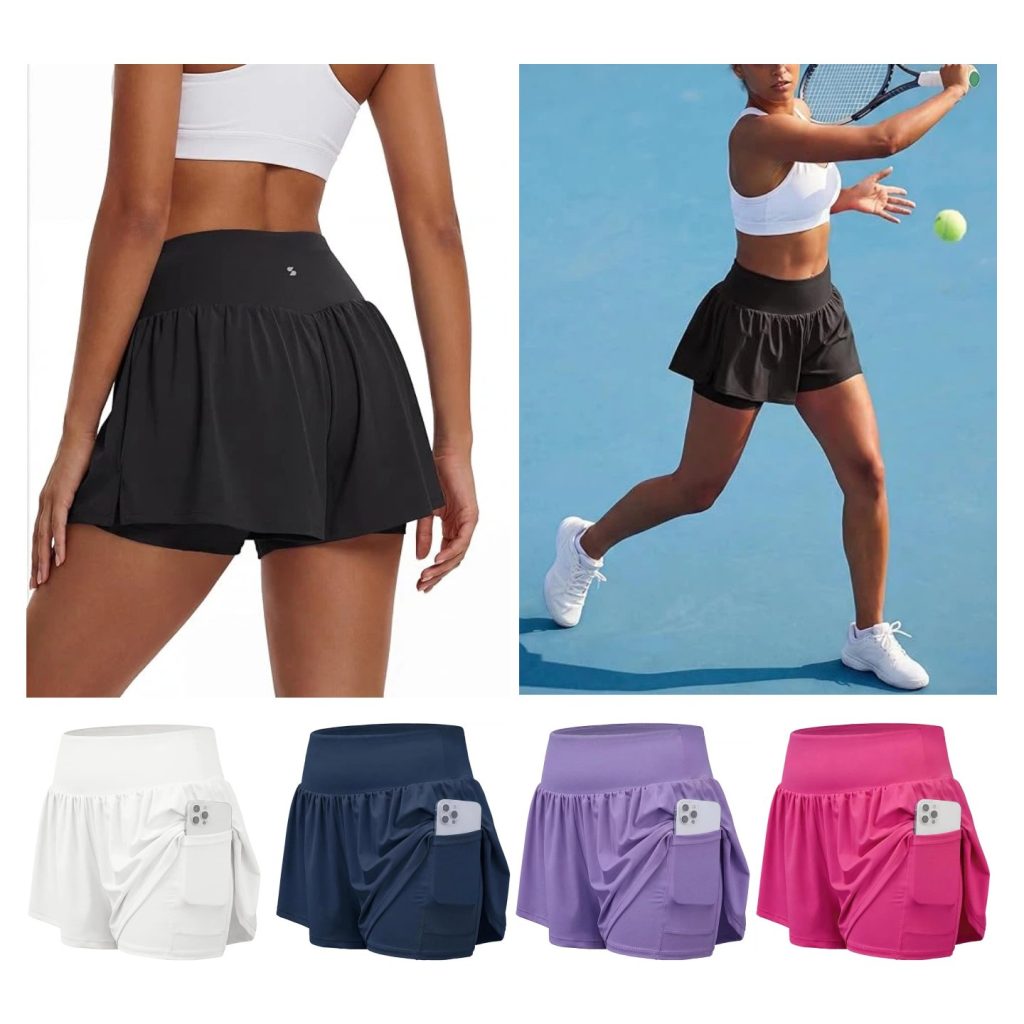 Women’s 2-in-1 Workout Shorts High-Waisted Shorts with Liner and Pockets