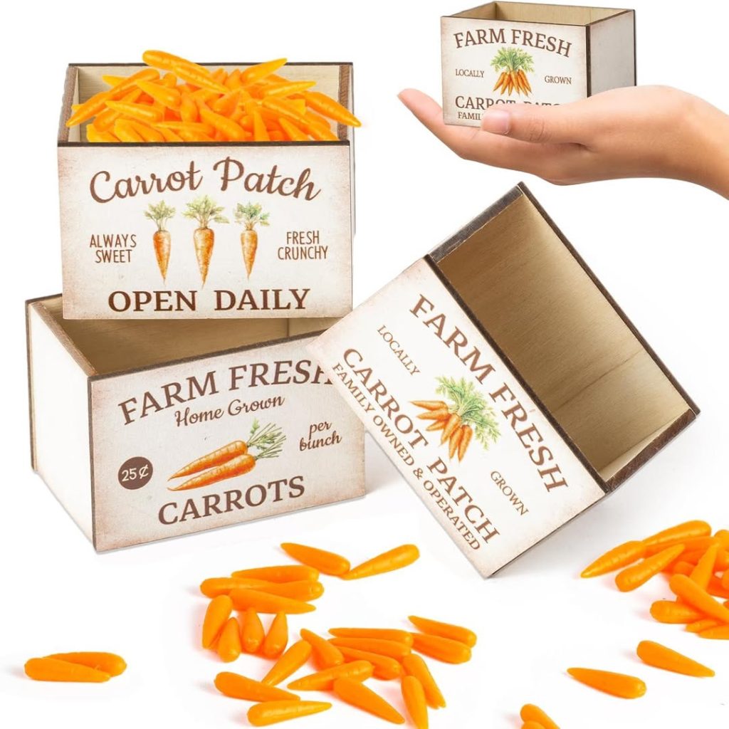 So cute for a tiered tray!!! 63Pcs Spring Easter Mini Wood Crates with Mini Artificial Carrots on sale for $9.99 but drops to $4.99!!