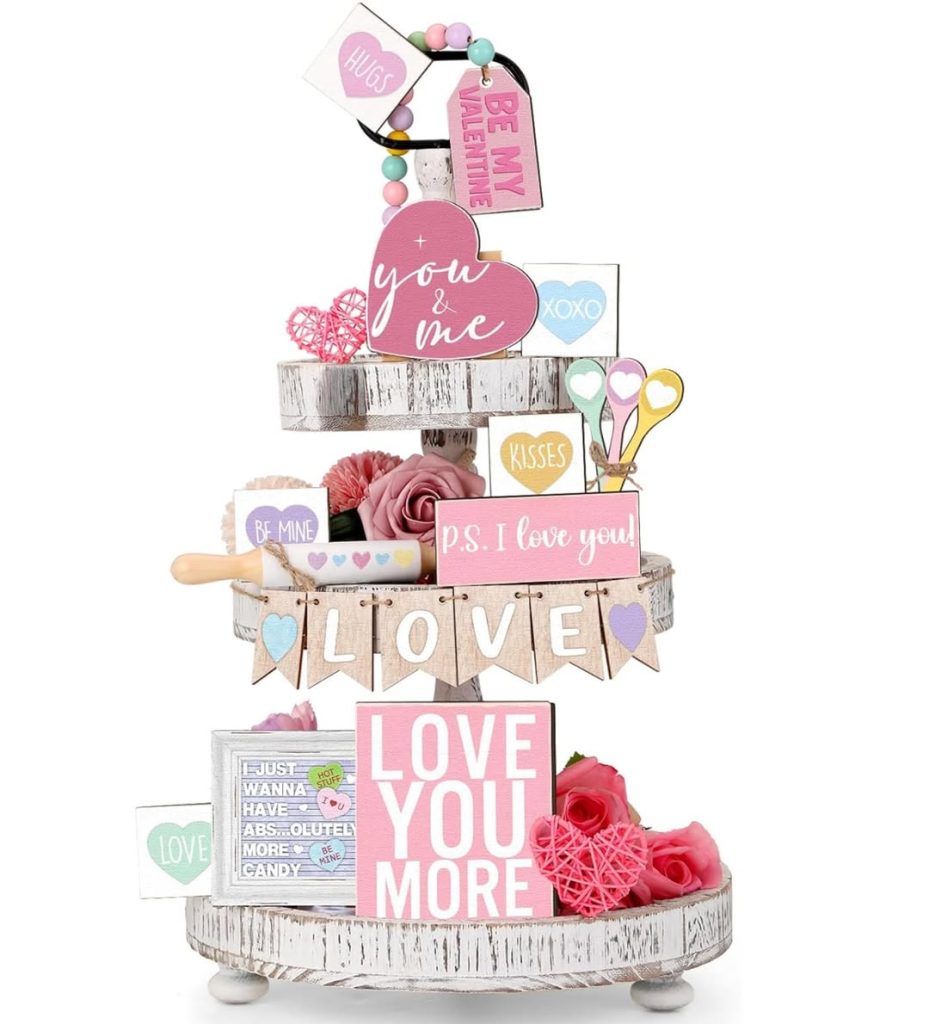 This is ADORABLE and the PRICE!!! Marsui 19 Pcs Pastel Valentine’s Day Tiered Tray Decor Set on sale for $6.99!