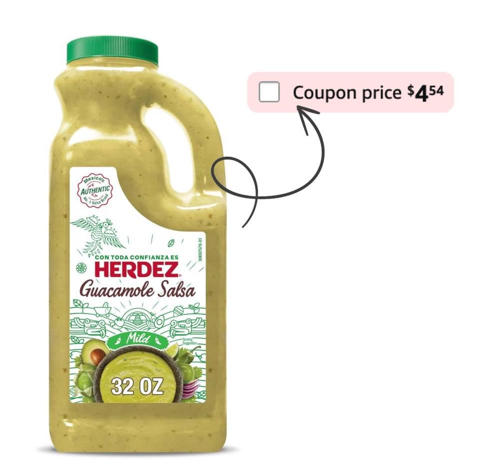 HERDEZ Mild Guacamole Salsa Jug, 32 oz (Pack of 1) on sale for $4.54 when you clip the coupon!!! If you opt for subscribe and save you can score it for even less!