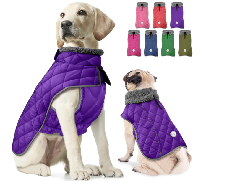 This waterproof winter dog coat with a reflective stripe is on sale for $13.49–$21.99 with promo code MEFK5JYT at checkout!!